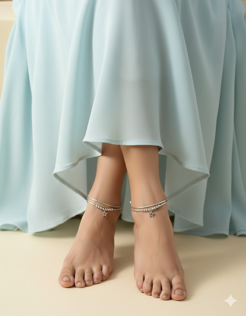 A whisper of silver, gracing every step with timeless elegance Anklets