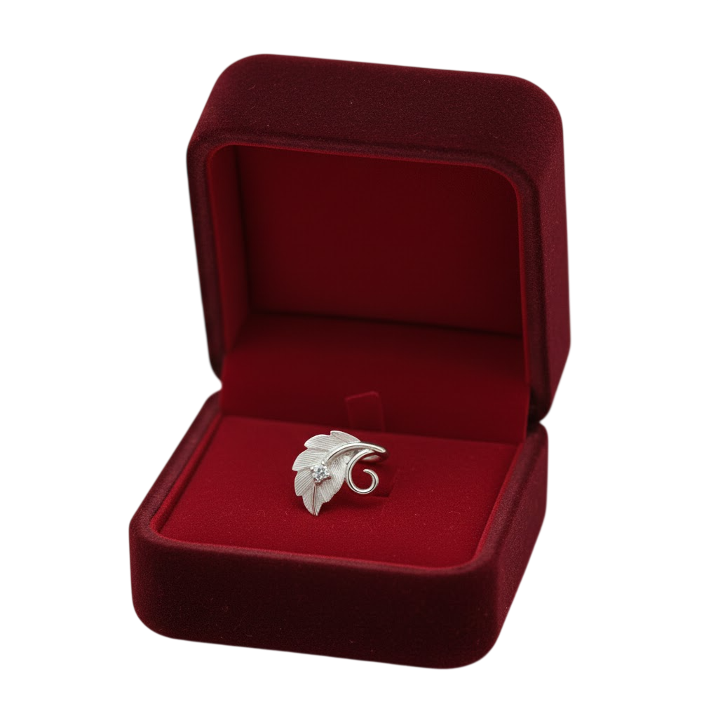 Celebrate natural beauty with this Elegant Leaf Design Silver Nose Pin from Roopmohana. Crafted in pure 925 sterling silver, this nose pin features a finely detailed leaf motif with soft texture lines and a subtle sparkling stone at the center, symbolizing freshness and grace.