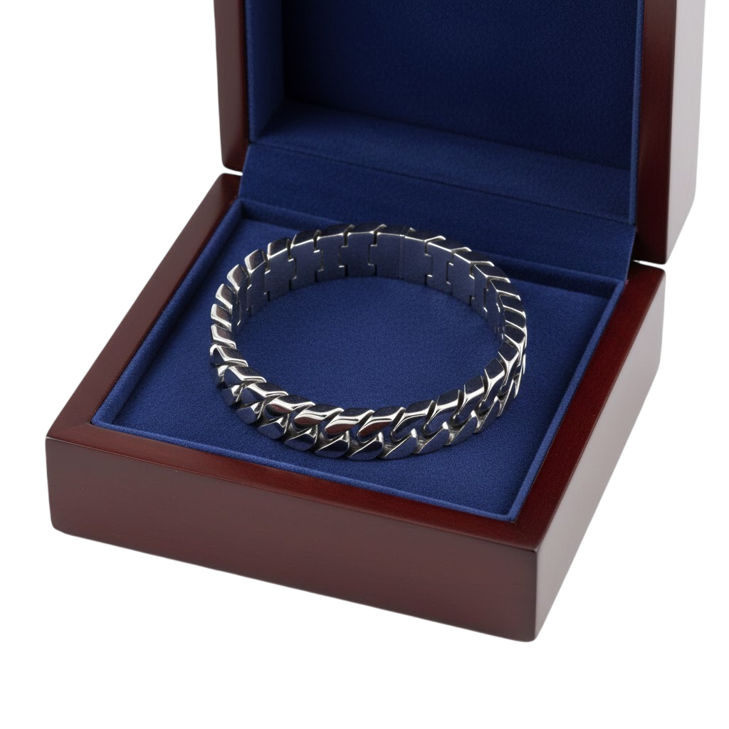 The high-polish finish reflects light beautifully, making it suitable for both casual wear and special occasions. Its strong, secure clasp ensures comfort and confidence throughout the day. A must-have accessory for modern men who appreciate premium craftsmanship and timeless design.