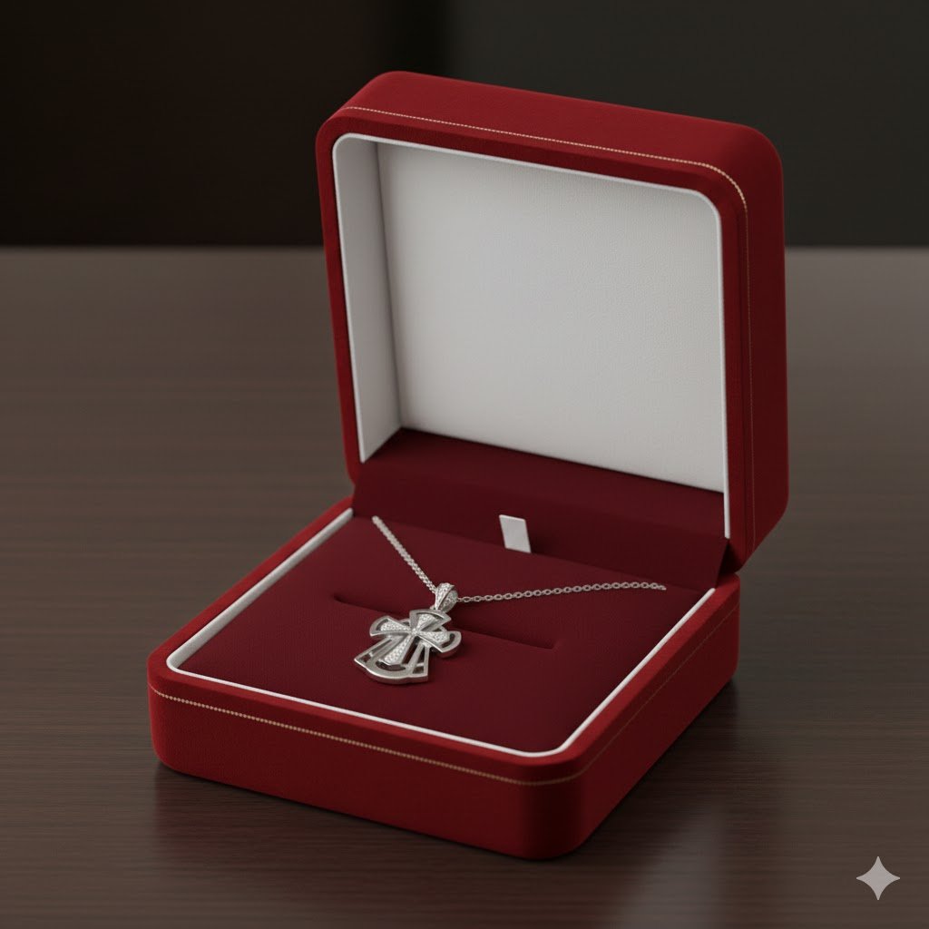 Celebrate your faith with the Religious Silver Pendant from Roopmohana — a masterful blend of spirituality and contemporary design. Featuring a distinctive cross-shaped geometric design, this pendant symbolizes hope, faith, and protection.