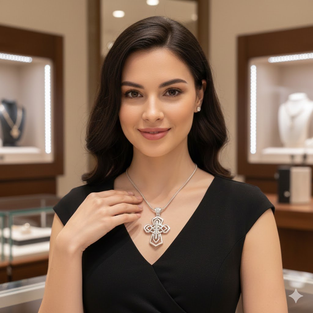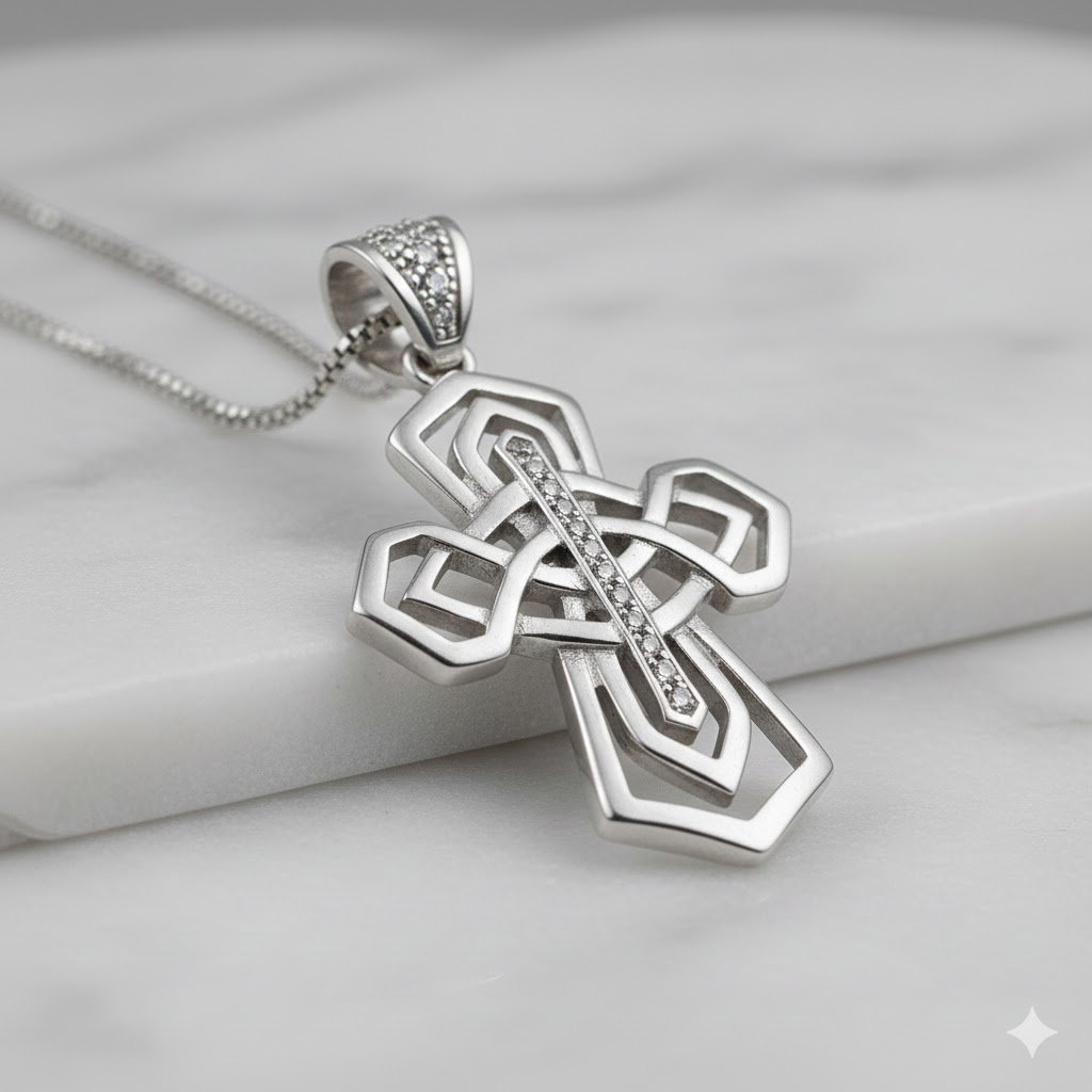 The Religious Silver Pendant by Roopmohana is a beautiful expression of faith blended with modern elegance. Designed with a cross-inspired geometric pattern, this pendant reflects spiritual significance while maintaining a minimalist and contemporary look.