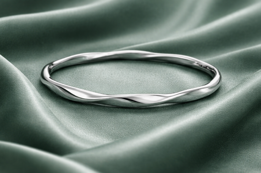 Gracefully sculpted with a soft, flowing twist, this silver bracelet embodies understated luxury. Its seamless, wave-like design reflects light beautifully, creating a gentle play of shine with every movement. Crafted for modern minimalism, the bracelet sits comfortably on the wrist while making a refined statement. Perfect for everyday sophistication or elegant layering, it captures the essence of timeless style with a contemporary edge.